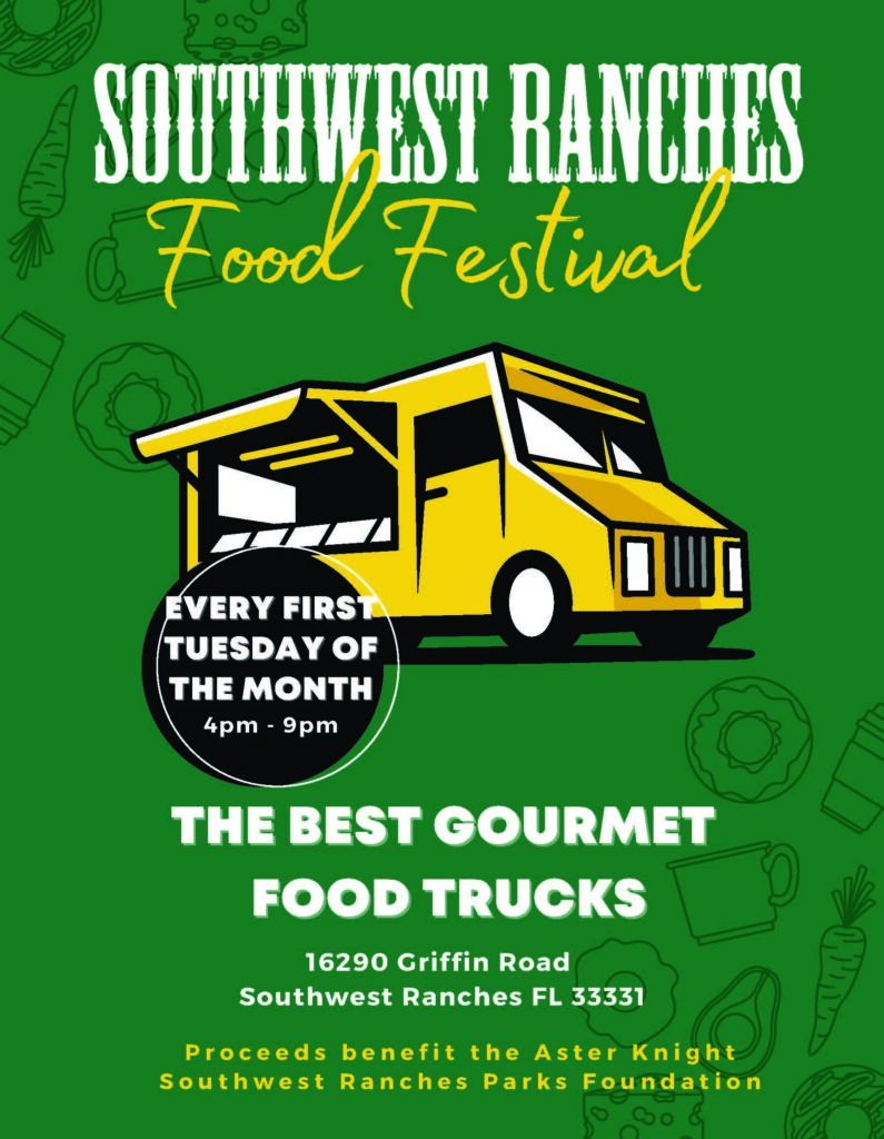 Come out to enjoy the monthly Southwest Ranches Food Festival. Invite and bring you coworkers, friends and family.